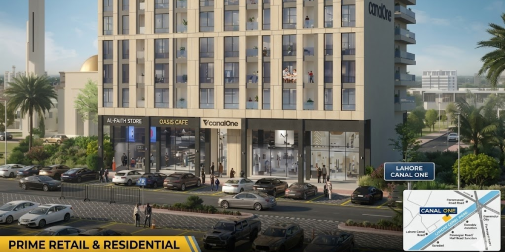 Invest in a Commercial property for sale in Lahore at Canal One is the best option. You can have modern facilities with high Rental Income. This project is beneficial for local businesses. With Canal One, grow your wealth in the Lahore property market.The payment plan is very easy. The infrastructure meets the demands of 2026.
